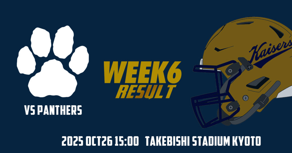2025 関西学生アメリカンフットボールリーグ Div 1 第 6 節関西大学 KAISERS vs 立命館大学 PANTHERS2025年10月26日(日) たけびしスタジアム京都 15時 KICKOFF ⬇︎ ... -